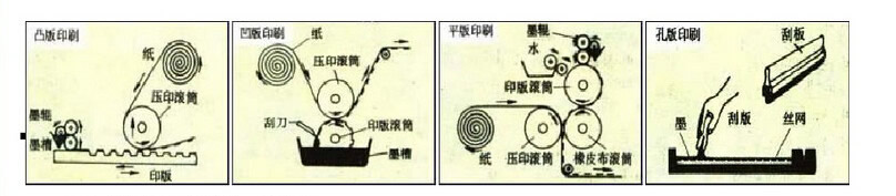 凹版、凸版、平版、孔版